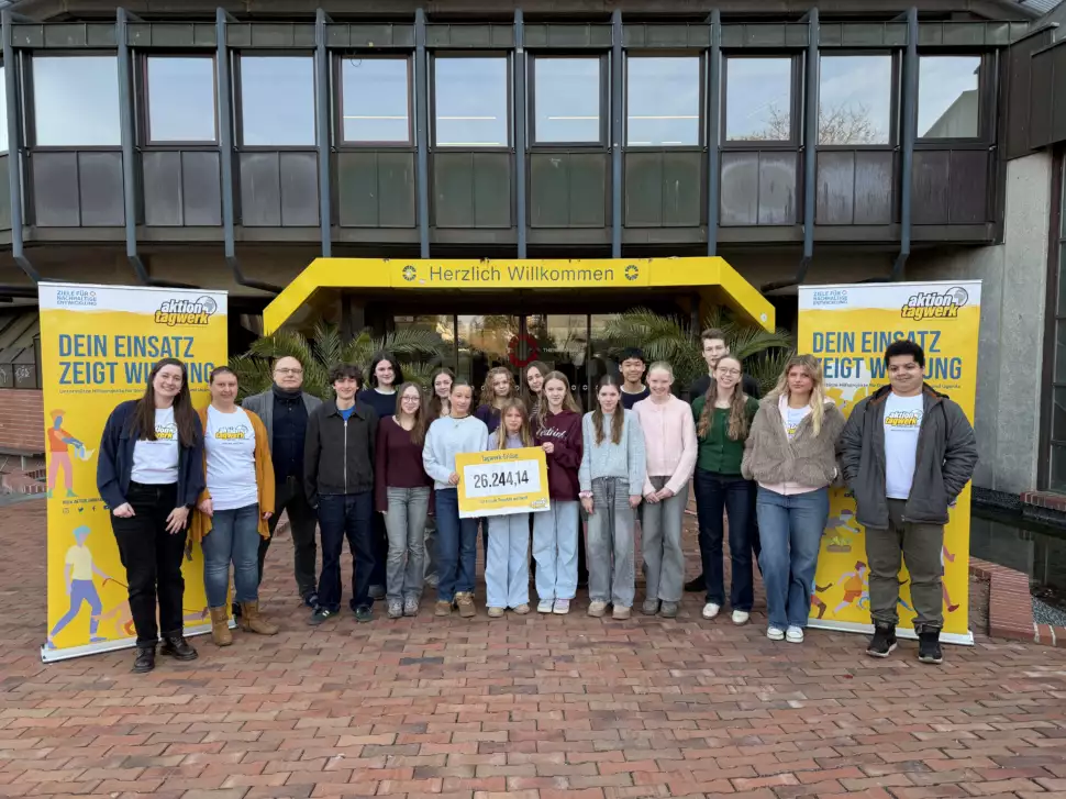Rund 550 Schüler:innen engagierten sich für die gute Sache und erzielten eine beeindruckende Gesamtsumme von 26.244,14 Euro. Die Stiftung Tagwerk überreichte der Schule symbolisch einen Scheck. Mit den Erlösen unterstützt der Projektpartner HUMAN HELP NETWORK e. V. Initiativen, die Kinder, Jugendliche und Familien stärken und Kinderrechte sichern.