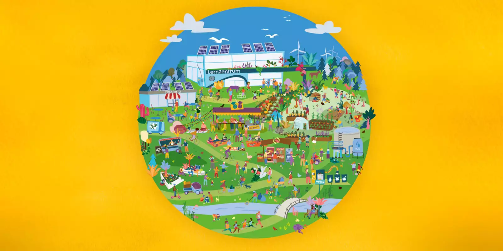 Das Wimmelbild zum diesjährigen Kampagnenthema „Ernährung sichern und Hunger beenden“ zeigt eine utopische Welt, in der alle Menschen Zugang zu gesunder und nachhaltiger Nahrung haben – ein anschauliches und inspirierendes Material, um Bildung für nachhaltige Entwicklung im Unterricht zu gestalten.
