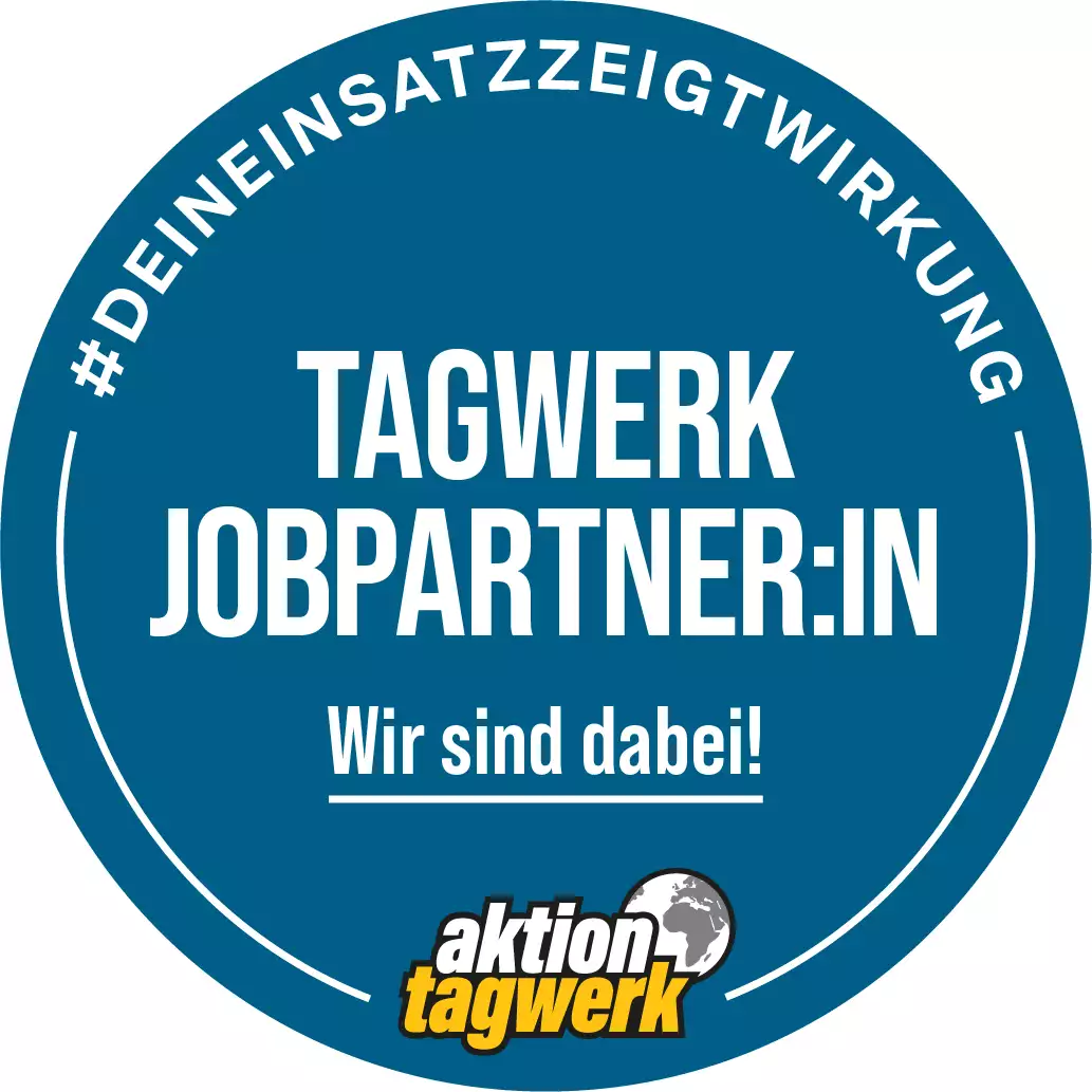 Sie wollen Ihr Engagement nach außen tragen und auf Ihre Teilnahme an der Aktion Tagwerk aufmerksam machen? Nutzen Sie dafür gerne auf Ihrer Website und auf den Social-Media-Plattformen unsere Tagwerk-Sticker. Die Sticker finden Sie als ZIP-Datei in unserem Download-Bereich.
